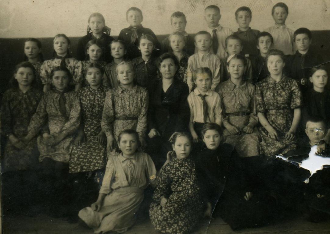 Ситнова (Кулёмина) М.И. с учащимися Потьминской 7-летней школы в годы войны